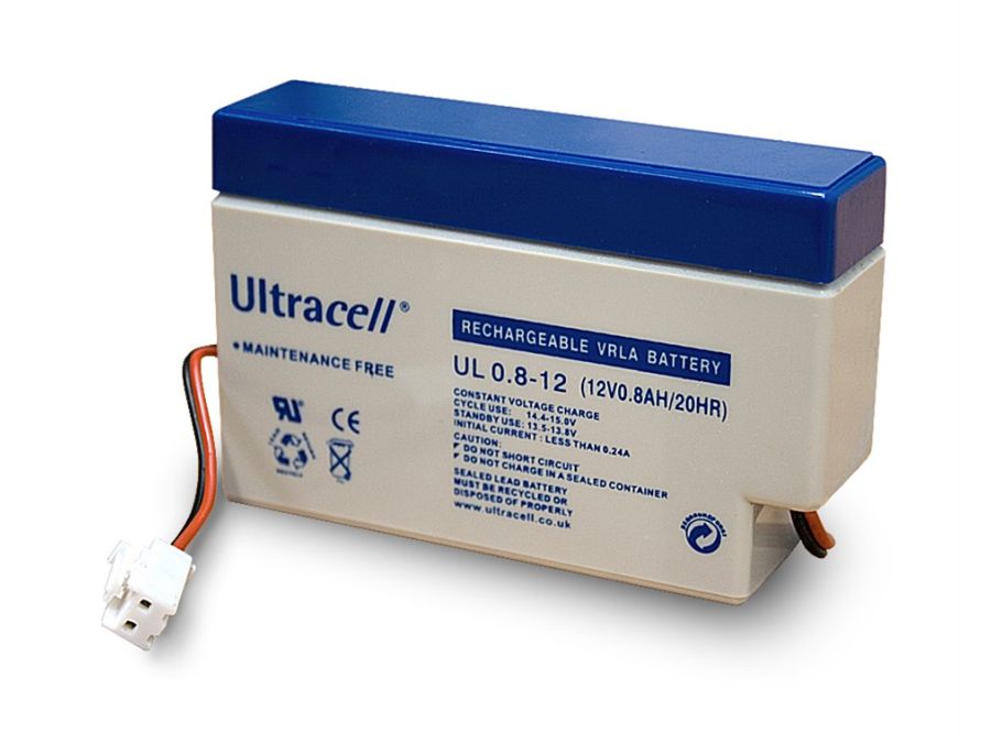Blybatteri m. kabel og JST stik - 12V / 0,8Ah (96x25x62mm)