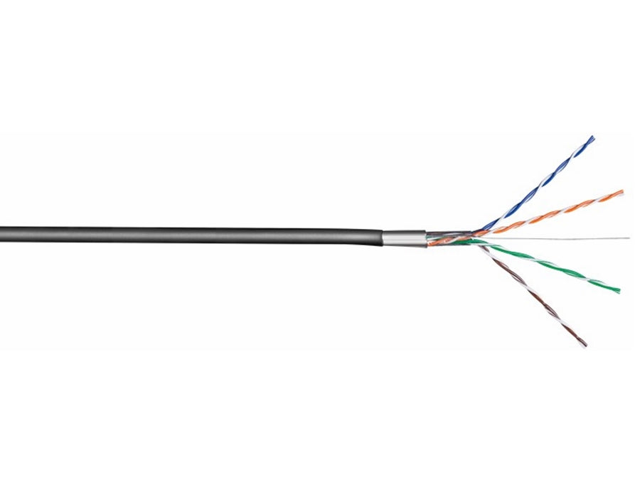 F/UTP Cat6 installationskabel (PIMF), til udendørs brug, 305m rulle, 250 MHz, Delta-certificeret, sort.