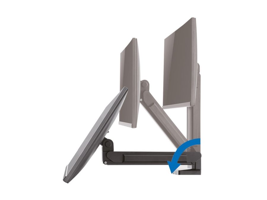 Sæt dit tv og computerskærme direkte på skrivebordet. På denne måde kan du bruge din skærm med fuld bevægelsesfrihed og vippe eller rotere dem, som du vil. Skærmen foldes fladt mod væggen for at skabe mere plads på di... Se mere