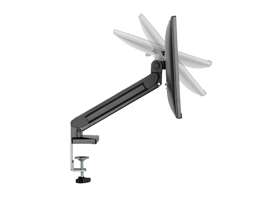 Sæt dit tv og computerskærme direkte på skrivebordet. På denne måde kan du bruge din skærm med fuld bevægelsesfrihed og vippe eller rotere dem, som du vil. Skærmen foldes fladt mod væggen for at skabe mere plads på dit skrivebord. Det er velegnet til flade og buede skærme for at give dig en ny dimension af visuel komfort.