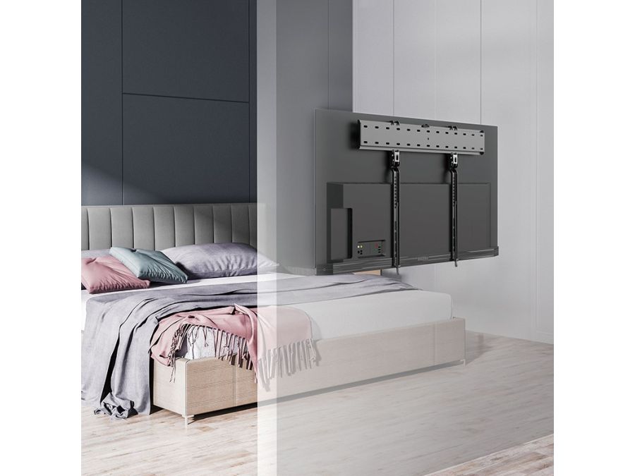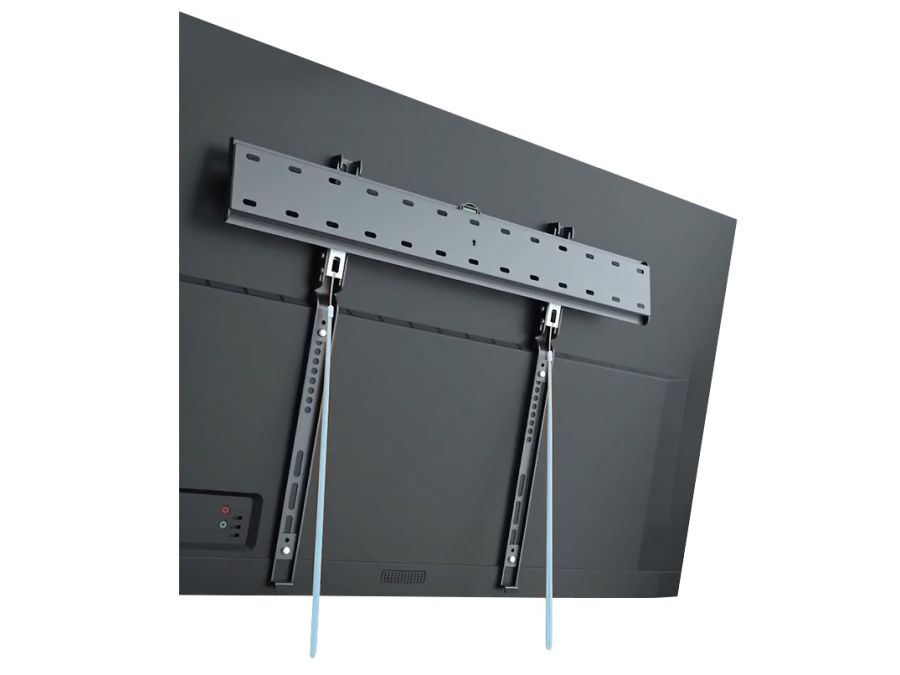 The ultra-slim wall mount is designed for space-saving low profile TVs, creating a sleek and stylish appearance on your wall. A built-in bubble level assures a perfect horizontal placement, while silicon pads avoids scratches or damage to the wall. In addition, the spring locks with strap of the lock and release your TV in a snap effortlessly.
