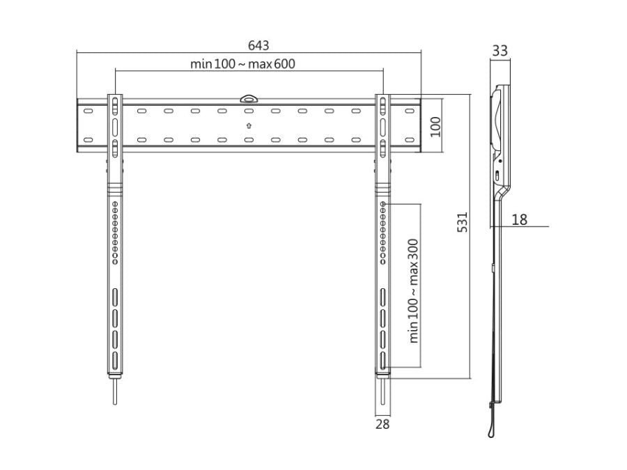 TV vægbeslag - 43-80" 18mm vægafstand, VESA