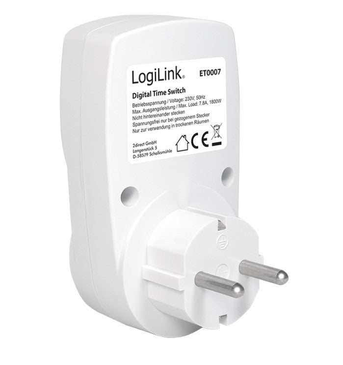 Save power cleverly with the LogiLink digital timer to control and reduce power consumption to the minute. With the modern LCD display, you are able to program up to 20 different switch-on and switch-off modes per day without having to plug the timer into the wall socket.