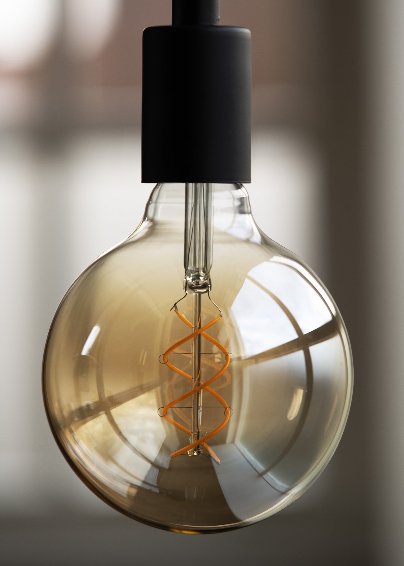 Spiraled Basic Globe G125 E27 5W 2000K Gold 280lm (27W) Dimmable 240V 125x175mm LED Filament lamp.