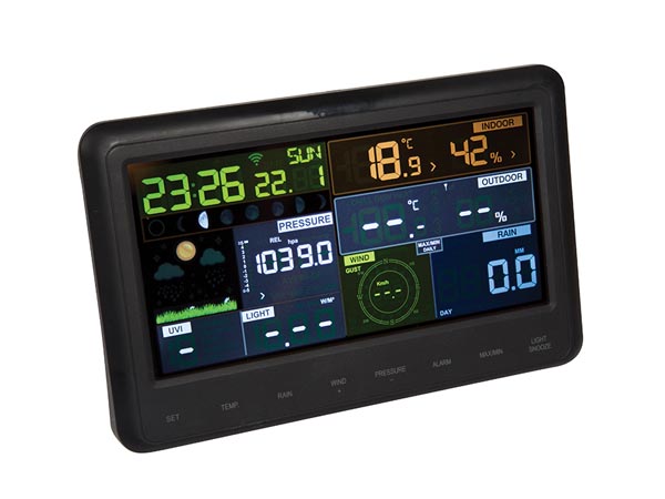 - Wifi indendørs og udendørs vejrstation med stort farvedisplay