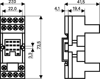 DIN-skinne relæsokkel - 250Vac / 12A, 8-bens