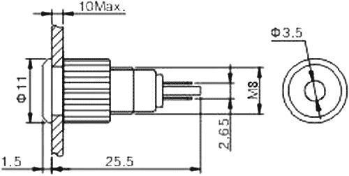 Tekniske detaljer: Producent (varemærke): ONPOW Type indikator: LED LED farve: Blå Driftsspænding: 24Vdc Monteringshul diameter: Ø8mm IP-klassificering : IP67 Ledninger: Til lodning Husmateri... Se mere
