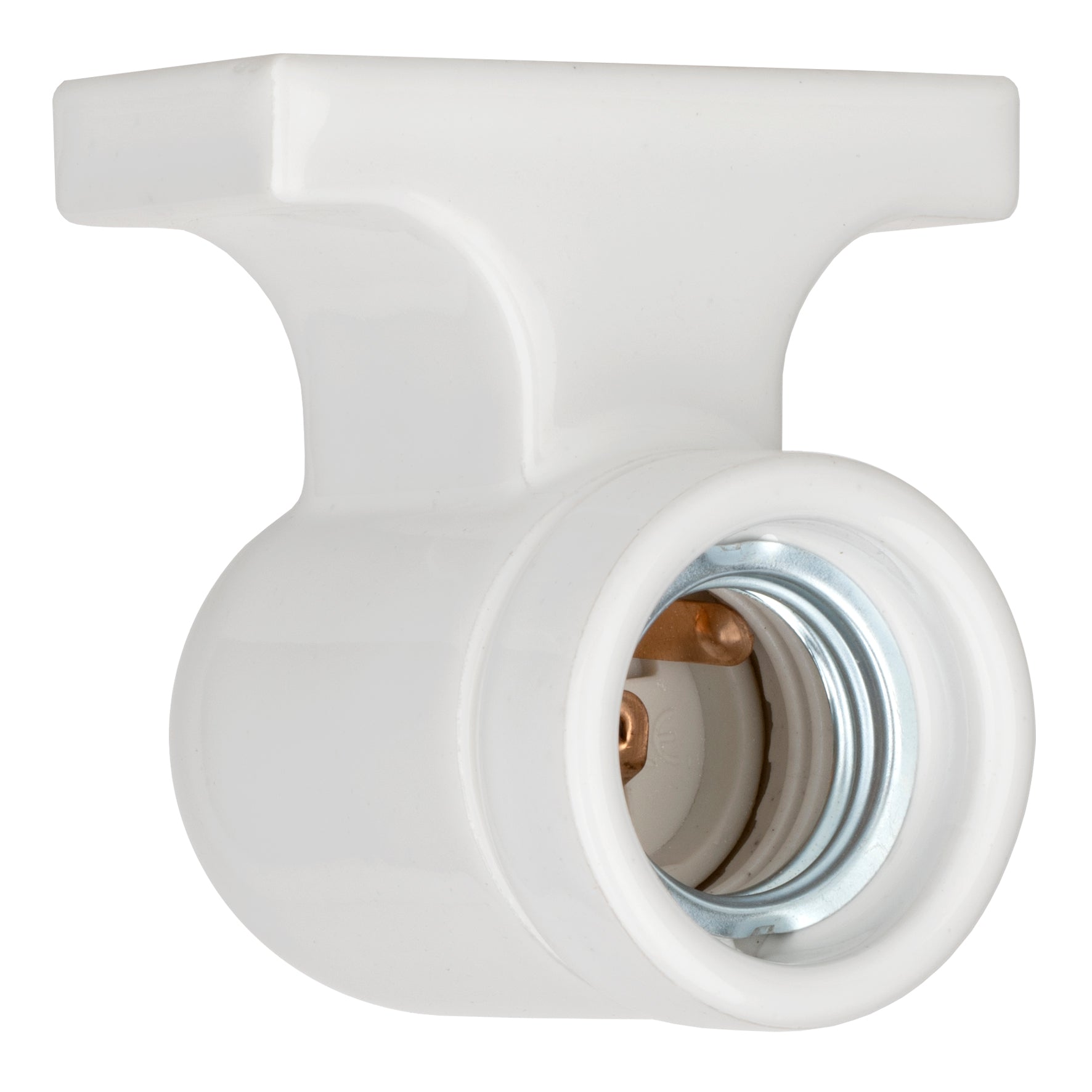 Right-angled retro look vintage porcelain surface-mounted lamp for E27 lamps. This fixture has two holes for wallmounting. You can let the lamp shine both upwards and downwards. Comes with a ceramic sleeve with lampholder inside to install the lamp. Light source not included.