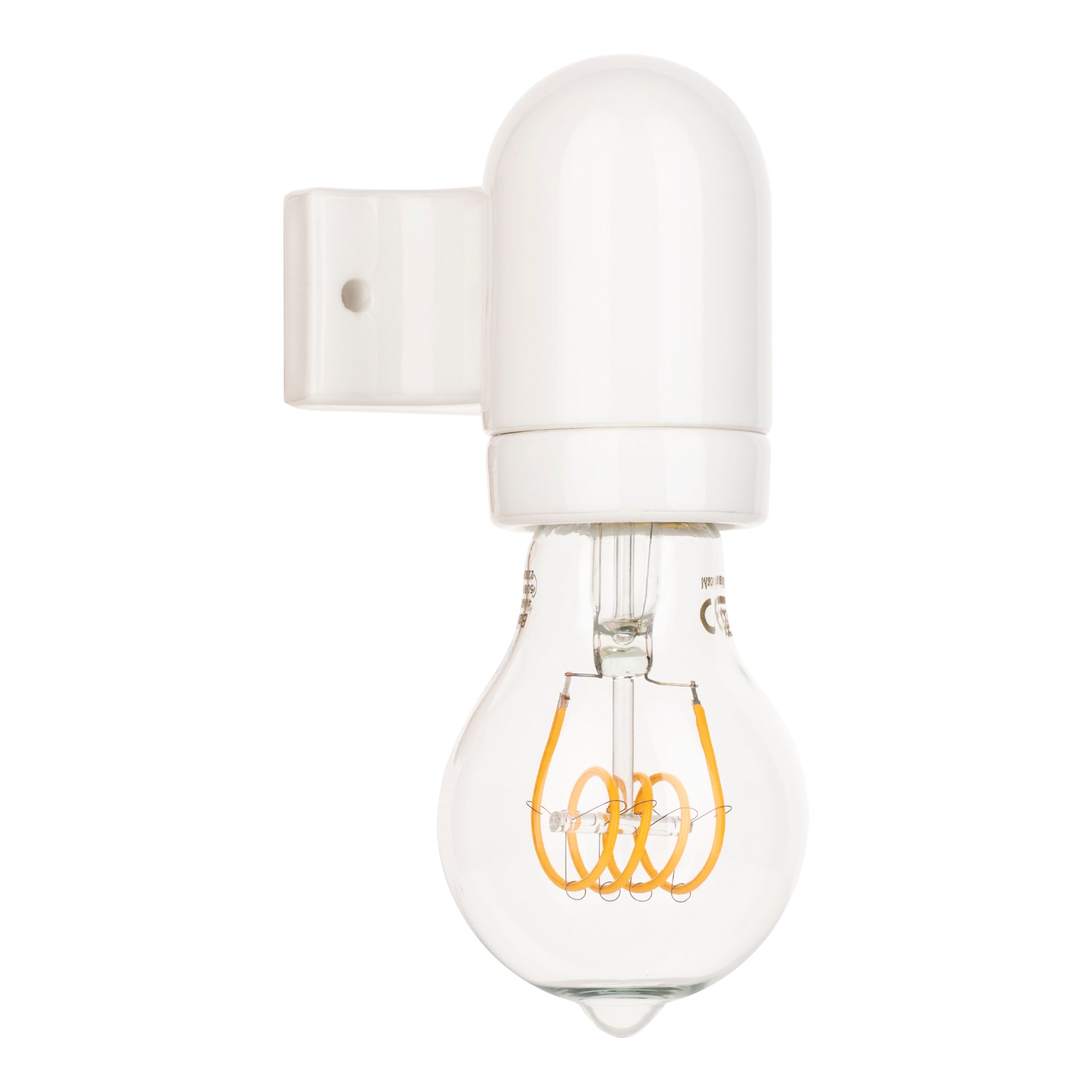 Retro-vinklet vintage porcelæn overflademonteret lampe til E27 pære. Dette armatur har to huller til vægmontering. Du kan lade lampen lyse både opad og nedad. Leveres med et keramisk hylster med lampeholder indeni til montering af lampen. Lyskilde medfølger ikke.