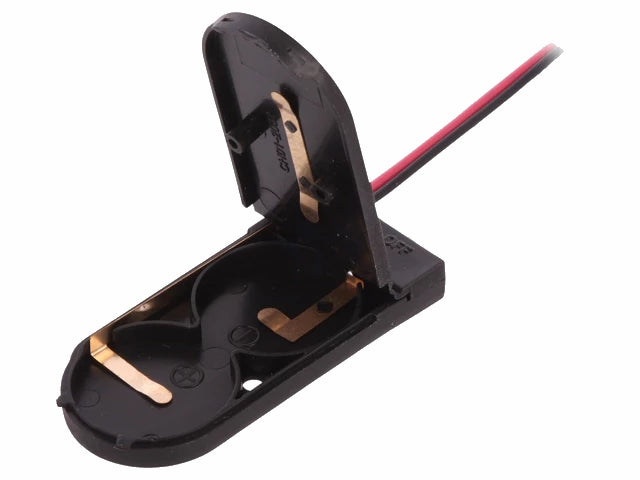 Batteriholder til 2xCR2032 knapcelle, Lukket hus m. kontakt