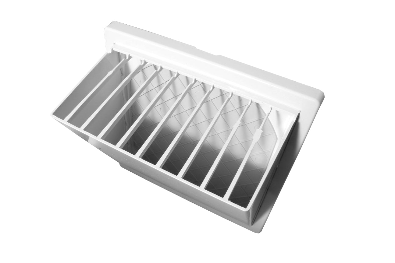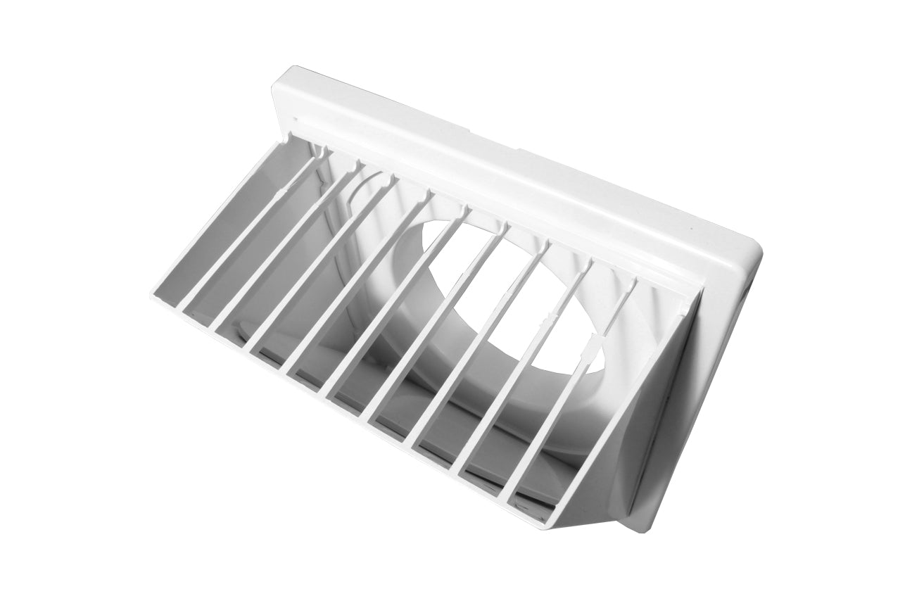 Vægrist med hætte til udendørs brug. Vægristens form beskytter mod indtrængning af vand. Med gitter for at forhindre fugle i at komme ind i ventilationssystemet. Vægristen er et dekorativt element til design af udvend... Se mere
