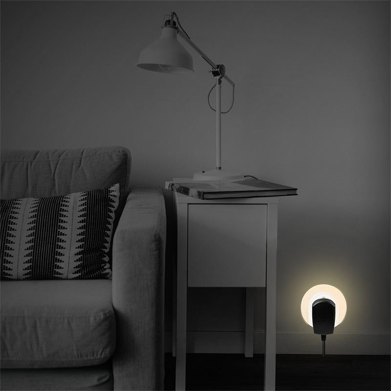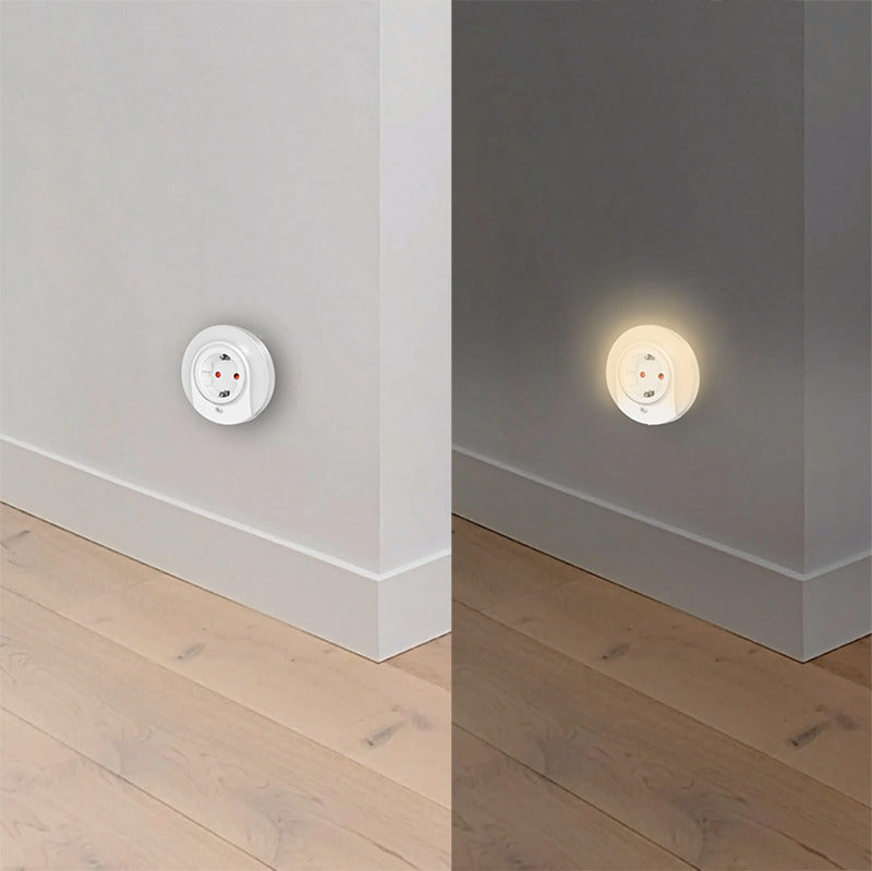 Dette natlys udsender behageligt varmt hvidt lys og giver orientering i mørket. Med skumringssensor tændes lyset automatisk i mørket, perfekt til soveværelse, babyværelse, køkken, trappe eller mørke gange. Den har endda en udgang til dine 230Vac-enheder.