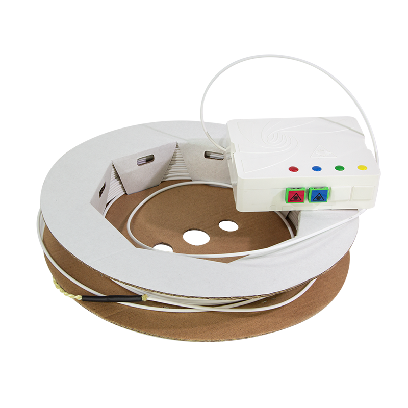 Kompakt FTTH tilslutningssæt til væg- eller DIN-skinnemontering. Denne færdigmonterede løsning med fiberoptiske installationskabler og pigtails er ideel til at forbinde bygninger med fiberoptik (FTTx). Installationskablet er på en paprulle, pigtails og adaptere er allerede monteret i kassen klar til tilslutning.