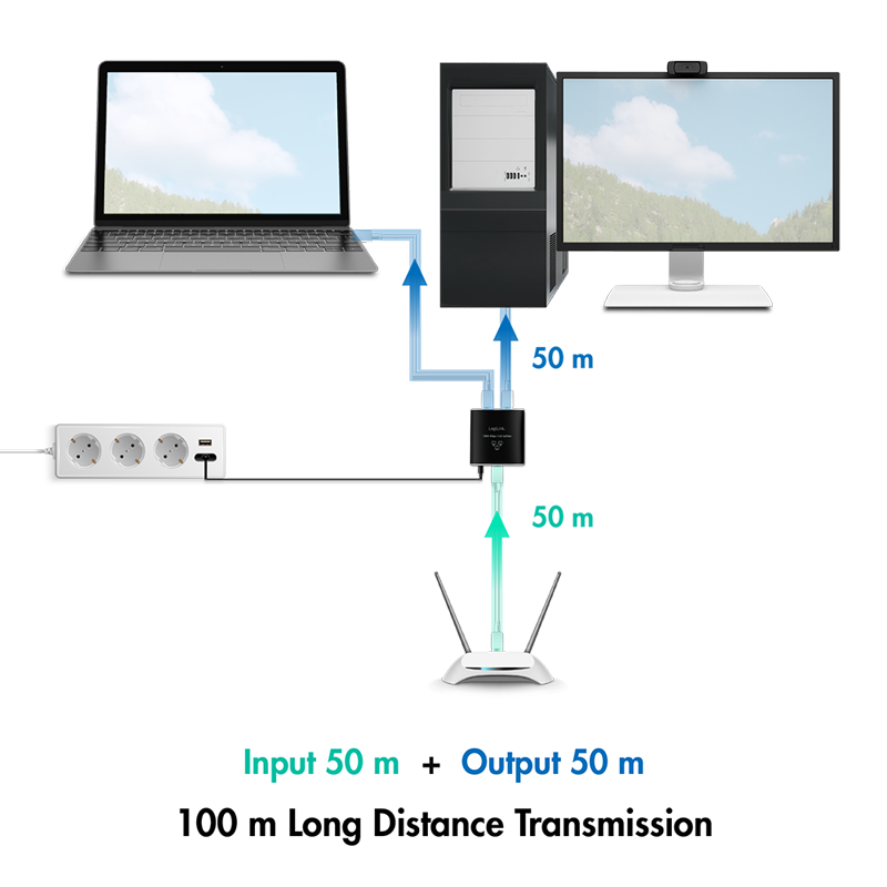 - Secure and stable 1000 Mbit/s high-speed transmission up to 100 m