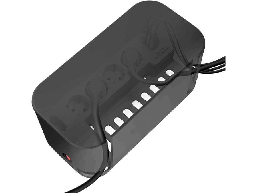 With our cable box from LogiLink, you can supply up to 8 devices, e.g. laptops, smartphones, tablets or lamps, with power on the spot and only need one socket connection. The integrated USB ports also offer the option of charging mobile devices such as smartphones or tablets directly via the cable box without having to use additional power supply units. The connections are stowed away in a space-saving, safe, dust-protected and decorative manner. By bundling the cables, you avoid tripping hazards and damage to the cables. Thanks to its modern design, our cable box fits into any look. Whether in the office or at home.