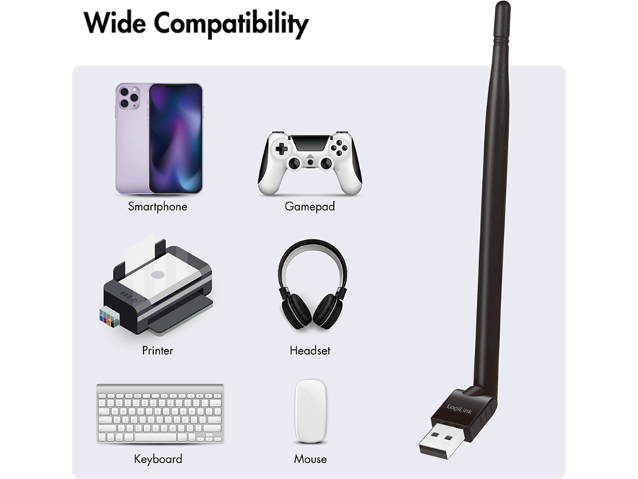 The LogiLink USB BT 5.3 adapter with external antenna supports latency-free and loss-free sound quality with lower power consumption compared to BT 5.0. video files with an impressive range of up to 150 metres. This adapter is ideal for those who need a powerful and reliable Bluetooth connection.