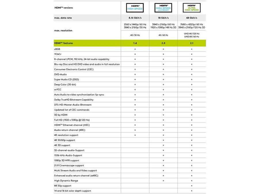 - Supported video standards: 4K/120Hz (3840 x 2160) UHD, 8K/60Hz (7680x4320) Full UHD