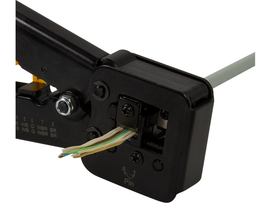 The LogiLink WZ0037 crimping tool is ideal for professional installers. It features a ratchet that allows quick and reliable connections continuously. This high-quality crimping plier is suitable for all standard RJ45 and RJ12 plugs and especially useful for cables with solid wires, which are normally difficult to process. The WZ0037 is also well suited for the LogiLink's MP0027 Cat.6 connector plugs, which are open at the front.