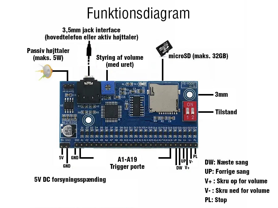 MP3 afspillermodul m. 19 triggerkanaler