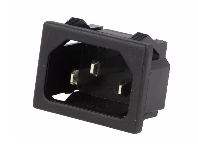 Apparatfatning - C14 han, tryklås, Sort (4,8mm spadestik)