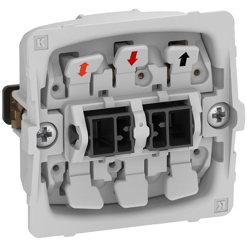 Er egnet til planforsænket montage i dåser for indmuring, indstøbning- og til isætning forfra, dåse til lette skillevægge samt på underlag og panelunderlag.