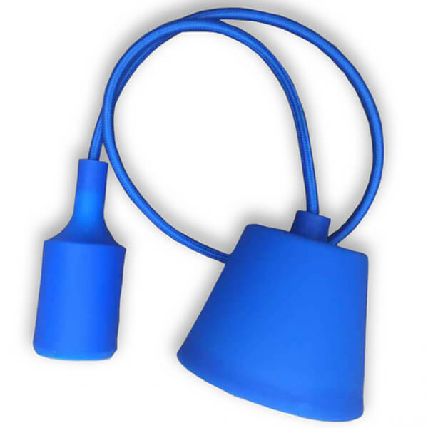 Blå pendel med stofledning og E27 silikonefatning